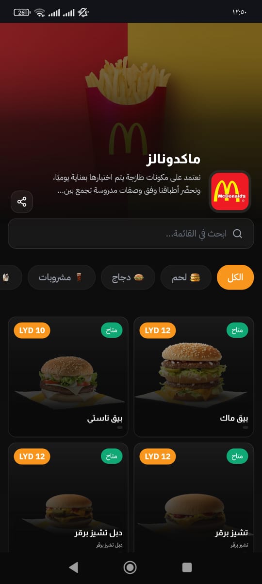 لا يحتاج الزبون لتحميل أي تطبيق. المنيو يعمل مباشرة على المتصفح.